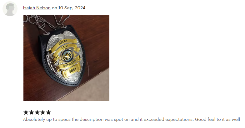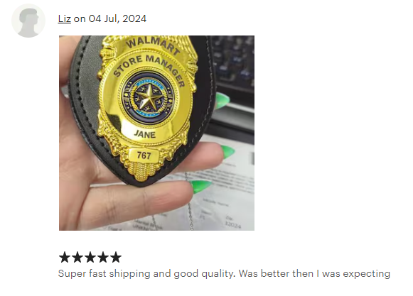 We can engrave the badges with your name, role and badge number. These badges are high quality and have been used by real law enforcement agencies and movie production companies.
